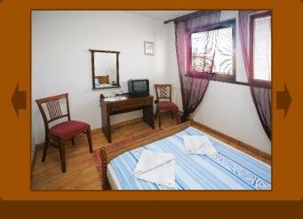 A felső szinten helyezkednek el a szobák (50 férőhely zuhanyzóval vagy káddal) melyek a belső zöld udvarra néznek. Az alsó szinten az étterem és a terasz található.