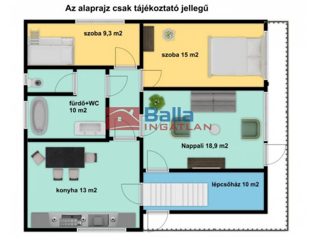 -szobák 18,9 m2;15 m2; 9,3 m2