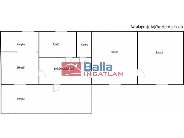 2 egymásból nyíló szoba, étkezős konyha, kádas fürdőszoba és egy 20 nm körüli terasz, mely alatt pince is helyet kapott.