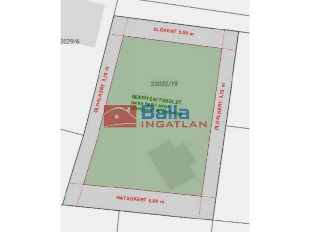Az ingatlan az Lke-1/SZ-N2 építési övezetbe tartozik, amit a szabadonálló beépítési mód jellemez. Max. beépíthetőség 20%.