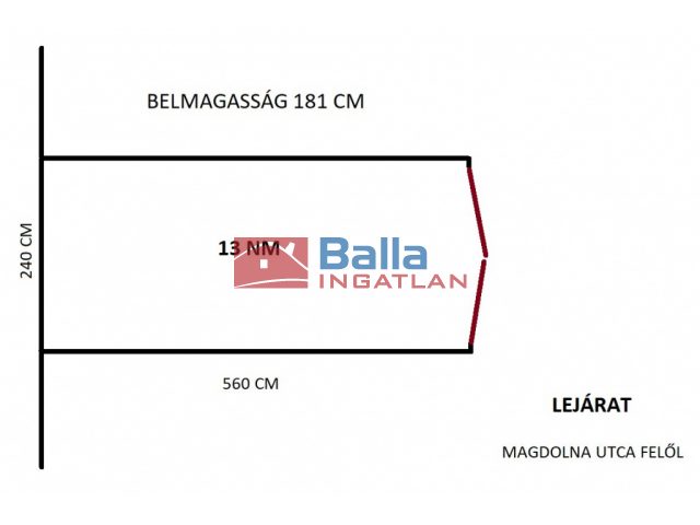Szélessége 240 cm, mélysége 560 cm, belmagassága 181cm.