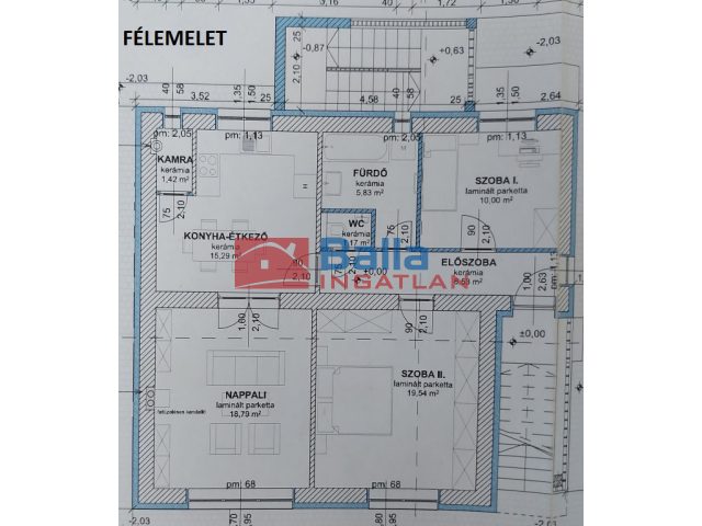 A ház B30-as téglából épült, a főfalakat tartották meg, kapott egy beton födémet és egy szint ráépítést a ház. Elkészült a lépcsőház és az emelet válaszfalai, kialakításra kerültek a földszint válaszfalai is, de itt megált a projekt. A házból három különálló lakás kialakítható külön bejárattal, melyek a félszuterén szinten 74 m2, a félemeleten 78 m2 és az emeleten 83 m2-es. Az ár a jelenlegi állapotra vonatkozik!