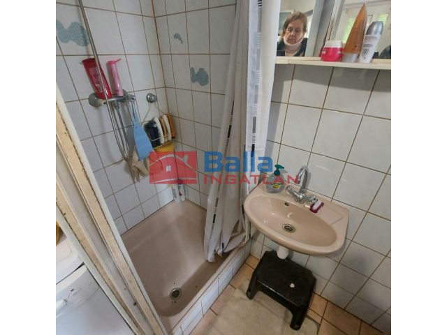 A fürdőszobában tusoló került beépítésre, egyben van a WC-vel.