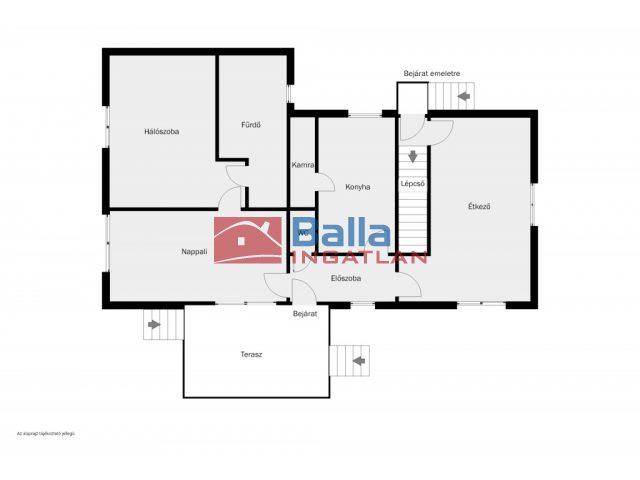 Az épületen belül, de külön lépcsőházban lehet a fiatalos, modern stílusú emeletre jutni. A lépcsőház az egyik szobából és kívülről is megközelíthető, tehát a két szint egybe nyitva is hasznáható vagy teljesen elszeparálva - külön lakásként. Ezen a szinten egy nagy háló, két világos félszoba, egy tágas, amerikai konyhás nappali és két fürdőszoba kényelmes otthont biztosít tulajdonosa számára.