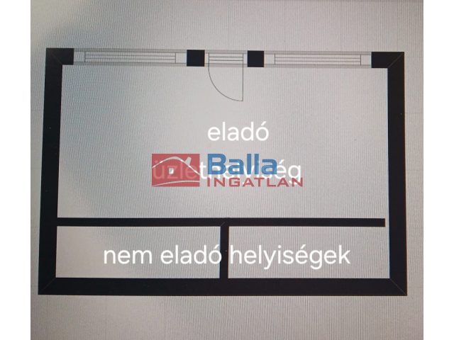 Készpénzes vevőt várunk, mivel az ingatlan osztatlan közös tulajdonban van, így csak az alaprajzon is jelzett tulajdoni hányad vásárolható meg.