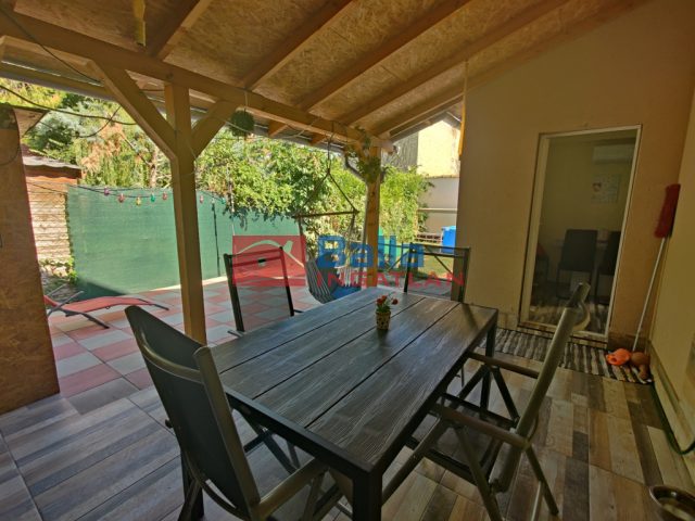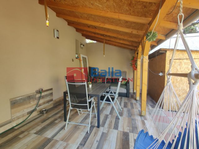 A fedett terasz tavasztól őszig ideális helyszíne lehet az étkezéseknek amellett, hogy a saját kert kellően tágas szabadtéri programokra.