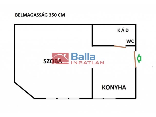 A saroktelken lévő épület közepes állapotú, a 34 nm-es lakásban több felújítás történt az elmúlt években. Belmagassága 350 cm, galériával tovább bővíthető a hasznos terület.