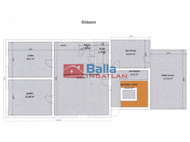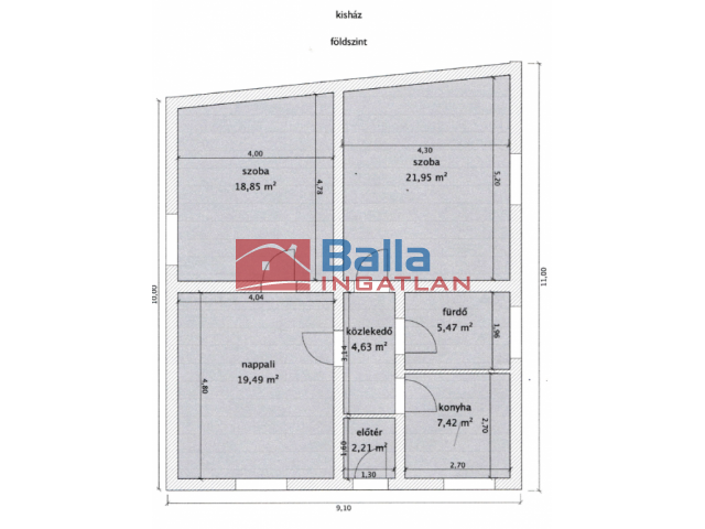Földszint: 3 szoba, konyha, étkező, fürdőszoba, közlekedő