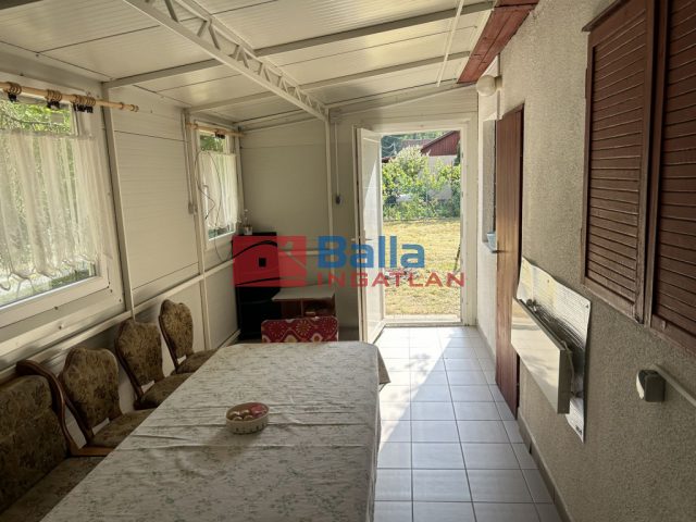 A 750 nm-s kertben épült ház eredetileg fából épült, majd téglából hozzáépített helységekkel lett kibővítve. A z épület nemrégiben lett felújítva, tető cserélve, szigetelve és téliesítve. Egy beépített terasz, 3 szoba, konyha fürdőszoba, külön épületben WC tartozik a nyaralóhoz. Az épület mellett egy garázs is épült. Közművek: víz, villany bekötve. A csatorna befizetve és a telken belül van a kiállás, már csak a bekötésre vár.