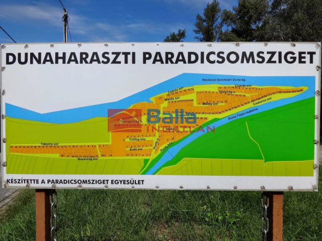 Budapest határától pár perc autóútra, Dunaharaszti, Paradicsomszigeten eladó vízparti, csendes utcában, 406 nm-es, összközműves telken, kiváló elosztású, 3 szobás, 70 nm-es, CSALÁDI NYARALÓ.