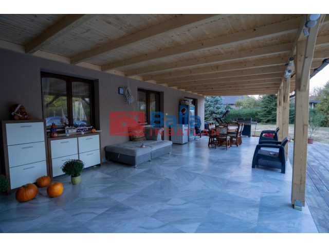 A ház további különlegességei között szerepel egy 60 négyzetméteres fedett terasz.