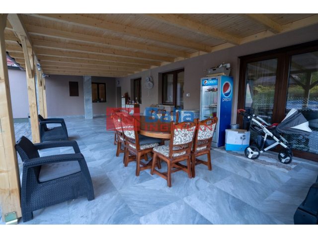 A ház világos tágas terekkel rendelkezik. A nappaliból (amely elektromos redőnyökkel felszerelt) a kétszárnyas teraszajtón keresztül jutunk a teraszra.