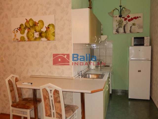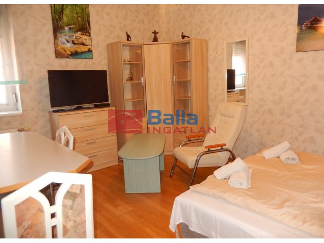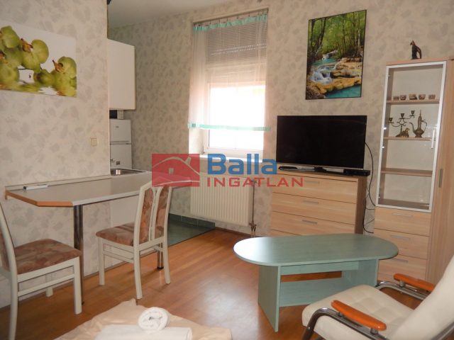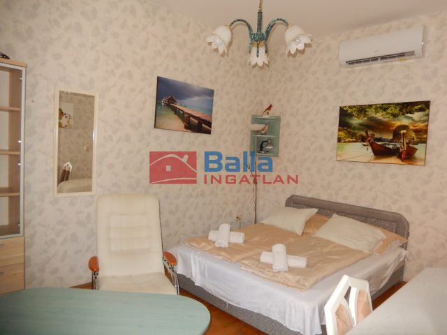 HÉVÍZ frekventált utcájában, a gyógyfürdőtől pár perc sétára eladó egy teljesen berendezett STÚDIÓ LAKÁS.
