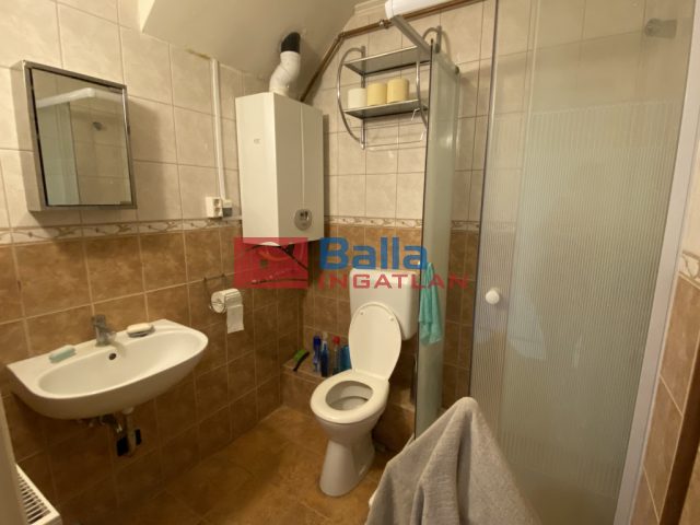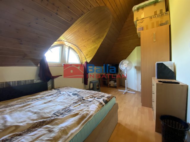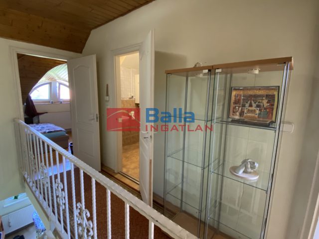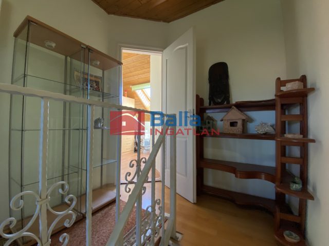 Jól járható, fából készült lépcső vezet a lakás felső szintjére, ahol egy kényelmes méretű közlekedőt találunk, innen nyílnak a lakás többi helyiségei, a két külön hálószoba, egy nagyobb, ahol kényelmesen elfér a franciaágy kisbútorokkal, és egy kisebb, amelyik alkalmas akár gyerek vagy vendégszobának. A két szoba között egy zuhanyzós fürdőszoba van wc-vel.