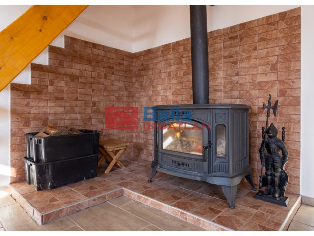 A fűtés kandallóval, valamint elektromos fűtőpanellel biztosított, így télen is kényelmesen használható.