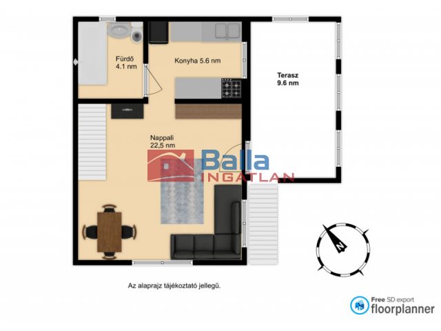 - Terasz: 9,6 négyzetméter