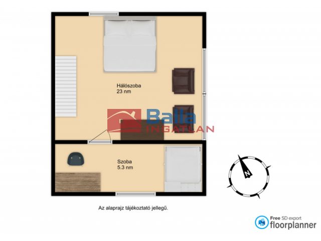 - hálószoba bruttó 23 négyzetméter (nettó 13 négyzetméter)