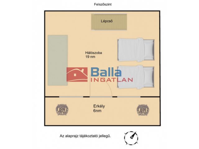 Felsőszint (tetőtér): bruttó 18 nm-es hálószoba. (nettó 12,6 nm)