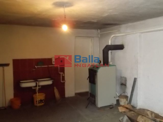 Az alsó szinten egy nagy étkezős nappali, a lépcsőház,egy konyha a kazán,-tüzelő tárolására alkalmas helyiségben,valamint egy terasz,amit utólag beépítettek.