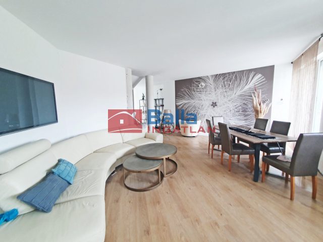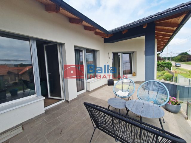 A földszinten egy étkezőrészt is magába foglaló közel 50 nm-es amerikai konyhás hatalmas nappali EXKLUZÍV KONYHABÚTORRAL, egy MODERN előtér, egy szoba, egy ELEGÁNS FÜRDŐ wc-vel, pakoló helyiség. Az emeleten 4 szobát, 1 fürdőszobát, külön wc-t és rengeteg teraszt találunk. A fenti egybefüggő TERASZOKRÓL GYÖNYÖRŰ PANORÁMA. A lakást lakberendező tervezte, egyedi bútorok, megoldások teszik ÁLOMOTTHONNÁ. LUXUS kivitelű, modern, kiváló minőségű anyagok használata.