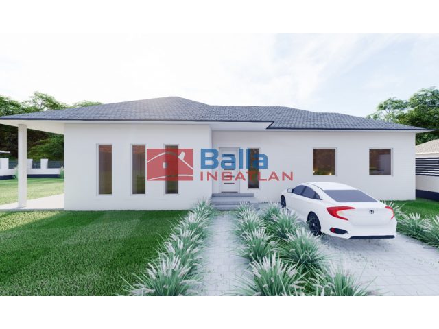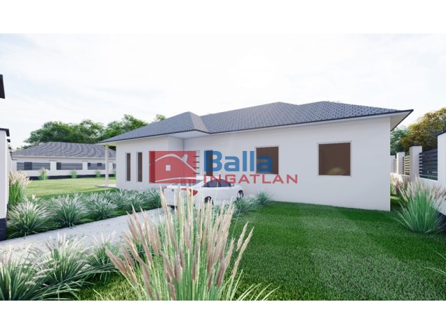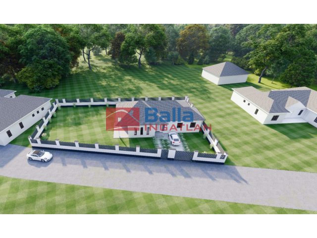 Nappali + 3 szoba, 2 wc, háztartási helyiség, gardrob, fedett terasz, térkövezett kocsi beálló.