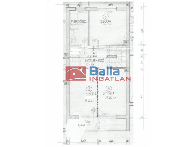 EMELET 67 m2 - 3 szoba, zuhanyzós fürdőszoba, közlekedő,erkély.