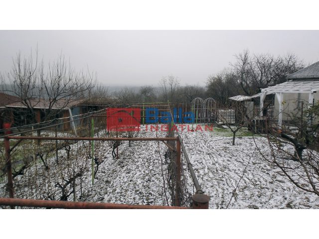 A 780 m2 sarok telken, gyümölcsfák és gondozott szőlő hozza terméseit.