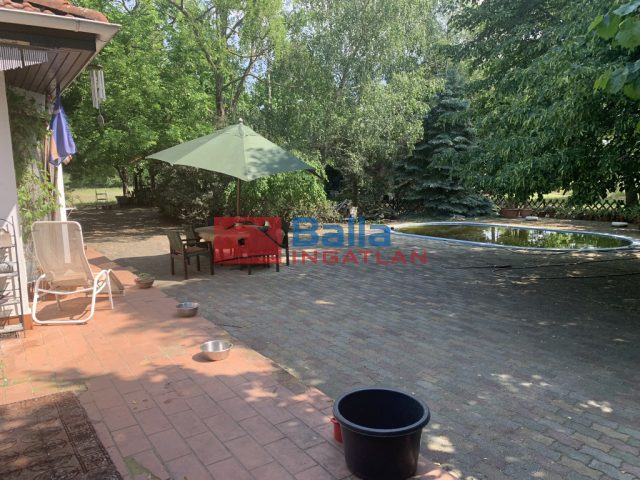 Szigetmonostor határában, nagy méretű telken (11.000 m2) egy egyszintes luxusingatlan eladó. A ház 180 m2, a szauna ház 20 m2, a vendégház 35 m2, a fedett kemence 15 m2, a medence 30 m3, a fészer 30 m2, a boxok 40 m2, egyéb külső tárolók 40 m2. A terület öntözőrendszerrel ellátott. Kiemelésre méltó: a területből 3000 m2 még bevonható. A ház hőtechnikailag kiemelkedő, mert egy amerikai típusú könnyűszerkezetes ingatlan. Az ingatlannal határos még 4 Ha terület, ezzel tovább bővíthető a birtok mérete.