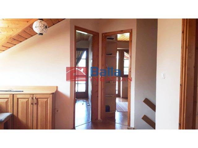 • Teljesen felszerelt ház: Alsó szinten konyhakapcsolatos nappali, fürdőszoba WC-vel, külön WC és kamra. Emeleten hálószobák, WC és fürdőszoba.