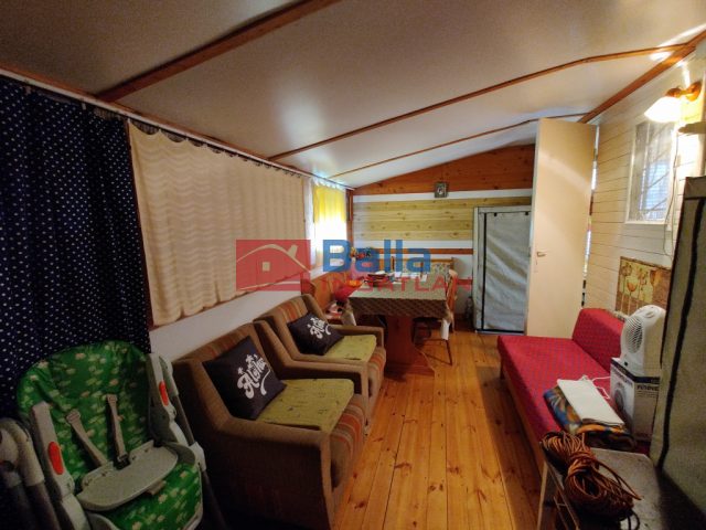 A körbejárható ház csatornázott, fából épült, a homlokzata szigetelt.