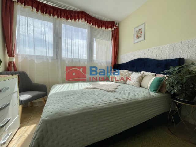 Eladásra kínálok egy 80-as években, csúsztatott zsalus technológiával épült társasházi lakást. A 10 emeletes épület 8. szintjén található a 42 m2-es ingatlan. A lakás eredetileg 1+fél szobásnak épült, de a felújítás során egy falat kibontottak, így most 1 szobás, viszont tágas étkezős konyhával büszkélkedhet. Szükség esetén, mivel gipszkarton fal lett elbontva, visszaállítható az eredeti elrendezése. A felújítás során az összes nyílászárót cserélték. Az ablakok redőnnyel ellátott műanyag szerkezetűek, dupla üvegezéssel, a beltéri ajtók pedig minőségi fa ajtókra lettek cserélve. A régi bejárati ajtót egy új, több ponton záródó biztonsági ajtó váltotta fel. A fürdőszobában és Wc-ben valamennyi szaniter cserélve lett valamint új fali és padló burkolatot kaptak a helyiségek. Az újonnan kialakított étkezős konyha és az előszoba járólapot kapott, itt cserére került a konyhabútor a fali csempe és a lakásban lévő összes radiátor is. A 19m2-es szobát laminált parkettával látták el. További életteret biztosít a nappaliból nyíló 4 m2-es erkély, ahonnan parádés kilátásban részesülhetünk.