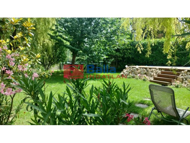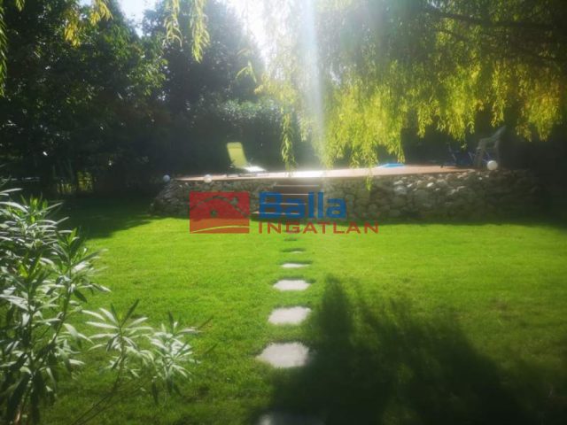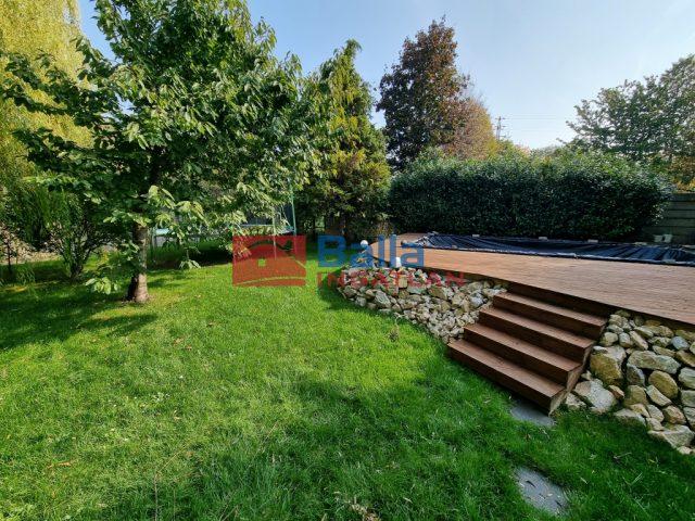 A kert parkszerűen kialakított, ősfás, gyümölcsfákkal, 3x6 méteres fűtött medencével, 20 nm-es napozóterasszal, automata locsolórendszerrel. A kertben elektromos töltési lehetőséggel ellátott autóbeálló, ház előtt még 2 autóbeálló található. Automata kapu. A télizöld sövénynek és nagy fáknak köszönhetően a kertbe nem lehet belátni az utcáról.