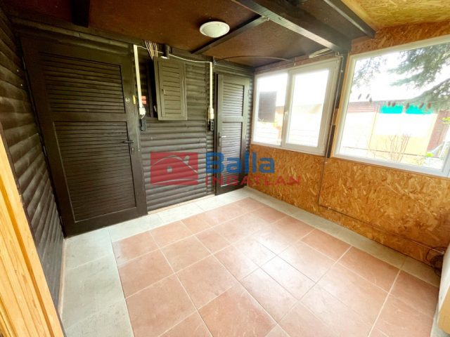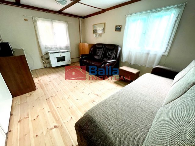 A felújításra váró típus faházat a 80-as években építették sávalapra, beton lábazattal, fa mennyezetfödémmel, később előtérrel egészítették ki. Hullámpala nyeregtető. Gázkonvektor fűtés, gáztűzhely, villanybojler. Szobában hajópadló, többi helységben járólap. Kb. 4 cm szigetelés a falakon. Ablakok fa dupla üveggel, és az előtérben műanyag. Belmagasság 220 cm. A kertben gondozott, koros fák, melyek kellemes atmoszférát biztosítanak.