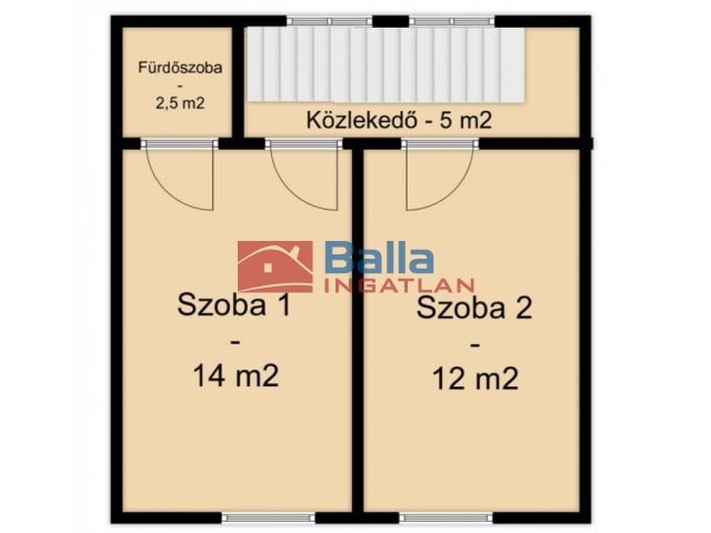 -Földszint: tágas nappali, konyha, fürdőszoba, külön WC, előszoba