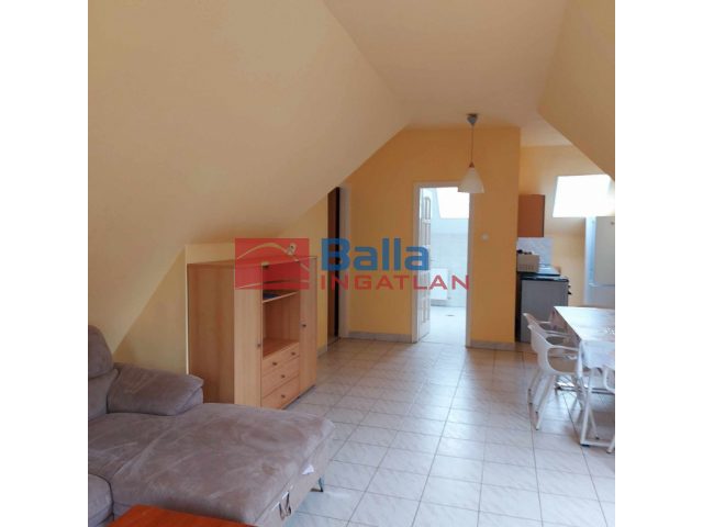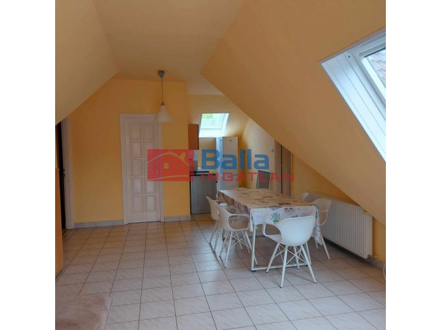 Az ingatlan a tetőtérben amerikai konyhás nappalival 2 hálóval, fürdő-wc-vel, terasszal rendelkezik.