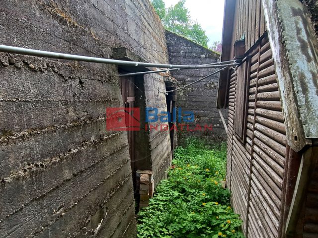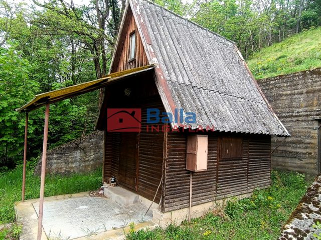 A dőlt fekvésű, lejtős telek közepén vízszintes terep lett kialakítva, egy nem megvalósult építkezés miatt. Jelenleg egy 20 m2-es faház, illetve 3 db pincehelység található itt.